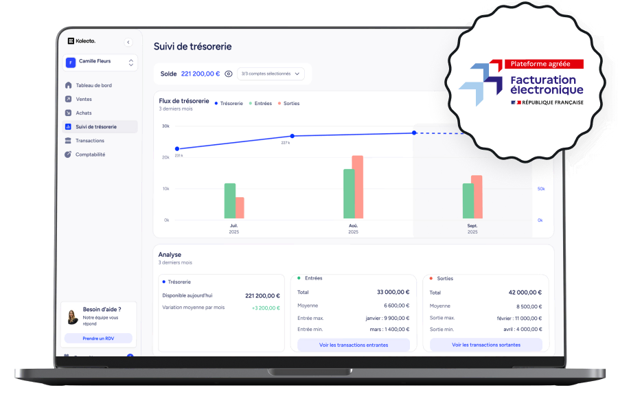 Kolecto est une solution complète de facturation électronique, conçue pour aider les entreprises à gérer efficacement leurs factures et à simplifier leur processus de facturation. Il s'agit d'une plateforme SaaS intuitive et sécurisée, qui permet non seulement de générer des factures mais aussi de les envoyer et de suivre l'avancement de leurs paiements en temps réel avec un prévisionnel de trésorerie. Kolecto automatise de nombreuses tâches. De plus, Kolecto prévoit un prix abordable et adaptés aux besoins des TPE/PME avec un accompagnement humain inclus.