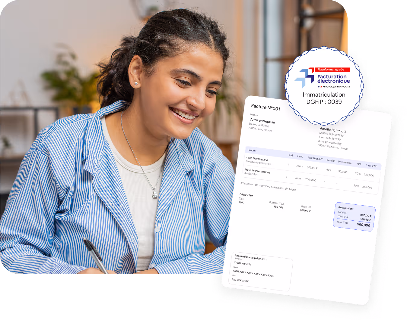 Créez et envoyez vos devis et factures en quelques clics, accélérez vos encaissements et minimisez vos impayés.